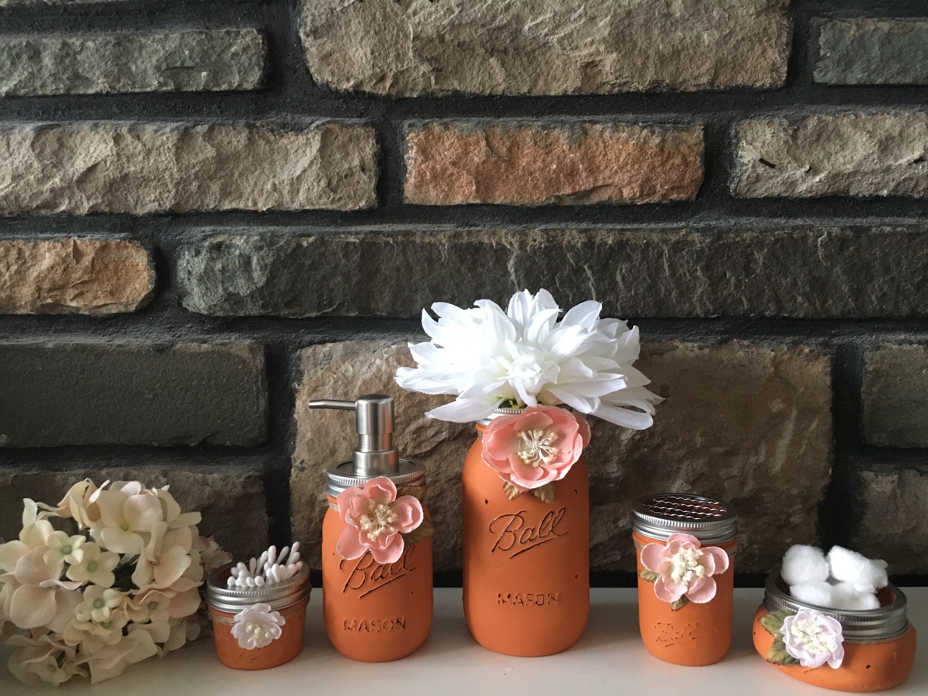 Bathroom Set Bathroom Mason Jar Set Soap Dispenser Mason Etsy