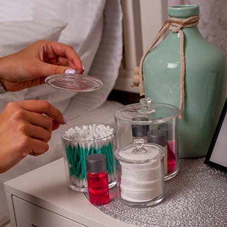 Premium Quality Acrylic Qtip Holder Apothecary Jars Bathroom Vanity Organizer Canister For Qtips Cotton Swabs Cotton Balls Cosmetic Pads Beauty Blender Nail Polish Bath Salts Clear Plastic 3 Pack Amazon Co Uk Kitchen Home