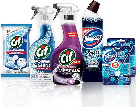 Cif Domestos Essential Unique Formula Bathroom Kit For Everyday Cleaning 6 Items Amazon Co Uk Health Personal Care