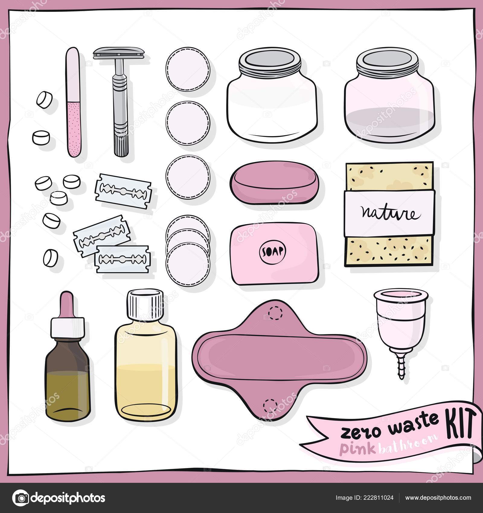 Zero Waste Bathroom Kit Hand Drawn Colorful Pink Vector Illustration Stock Vector C Demonique 222811024