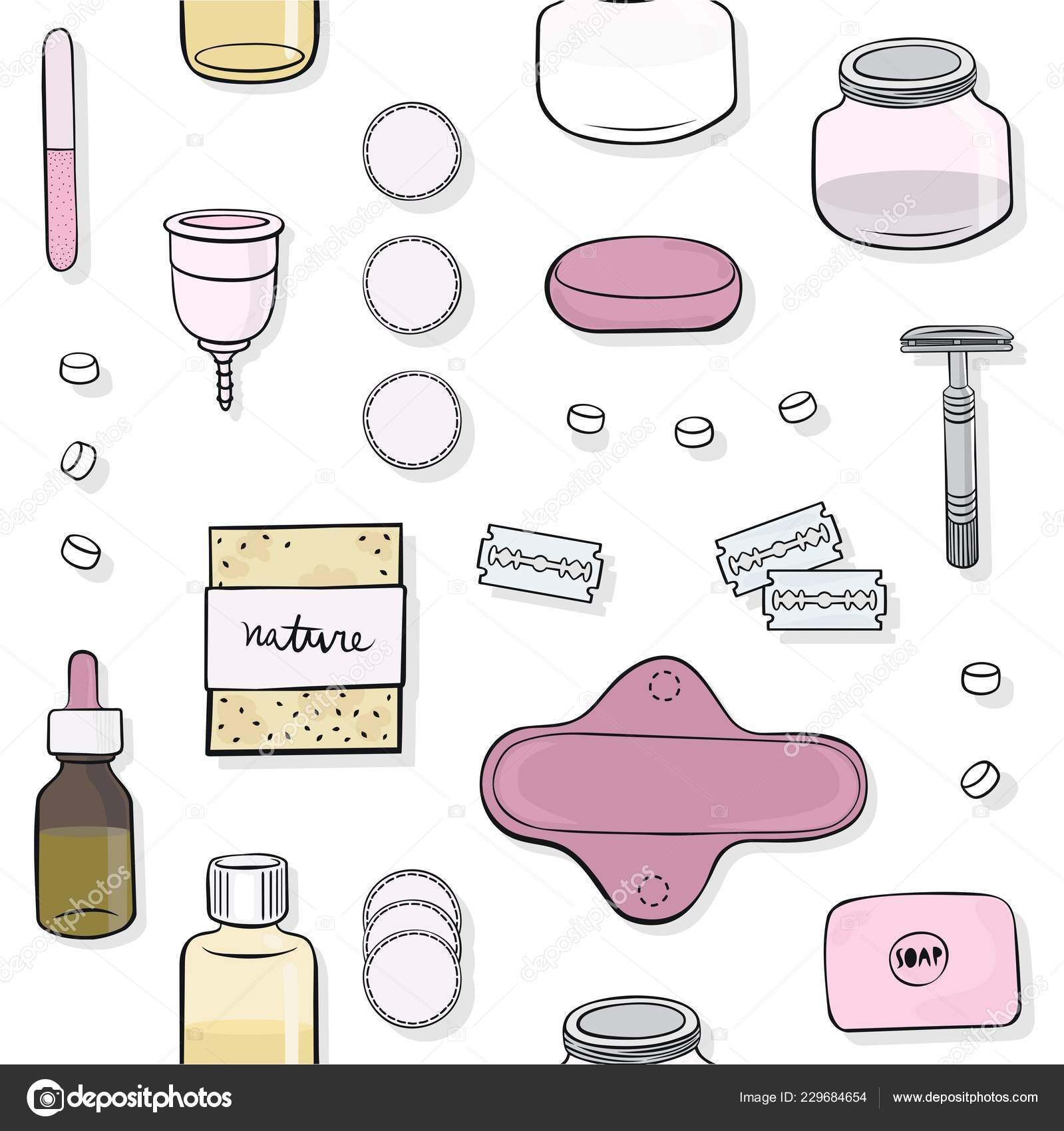 Zero Waste Female Bathroom Kit Hand Drawn Colorful Vector Seamless Stock Vector C Demonique 229684654