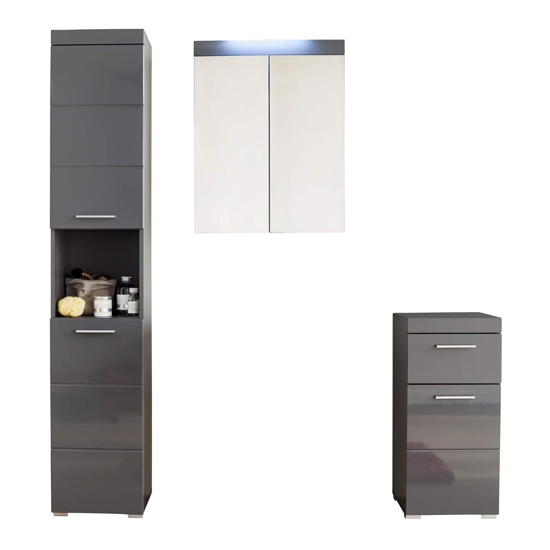 Amanda Led Bathroom Mirror And Storage In Grey High Gloss Furniture In Fashion
