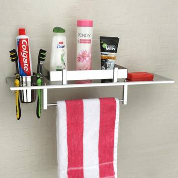 Impulse Stainless Steel 4 In 1 Multipurpose Bathroom Shelf Towel Hanger Tumbler Holder Soap Dish Bathroom Accessories 18 X 5 Inches Pack Of 1 Stainless Steel Wall Shelf Price In India Buy Impulse Stainless Steel 4