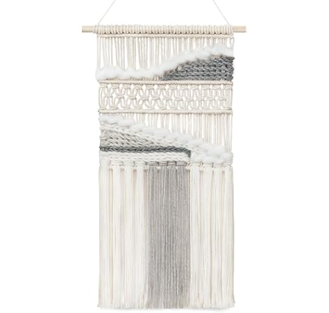 Amazon Com Mkono Macrame Wall Hanging Woven Boho Decor Gray Yarn Fringe Tassel Handmade Home Decoration For Bedroom Living Room Dorm Nursery Apartment 15 W X 26 L Everything Else