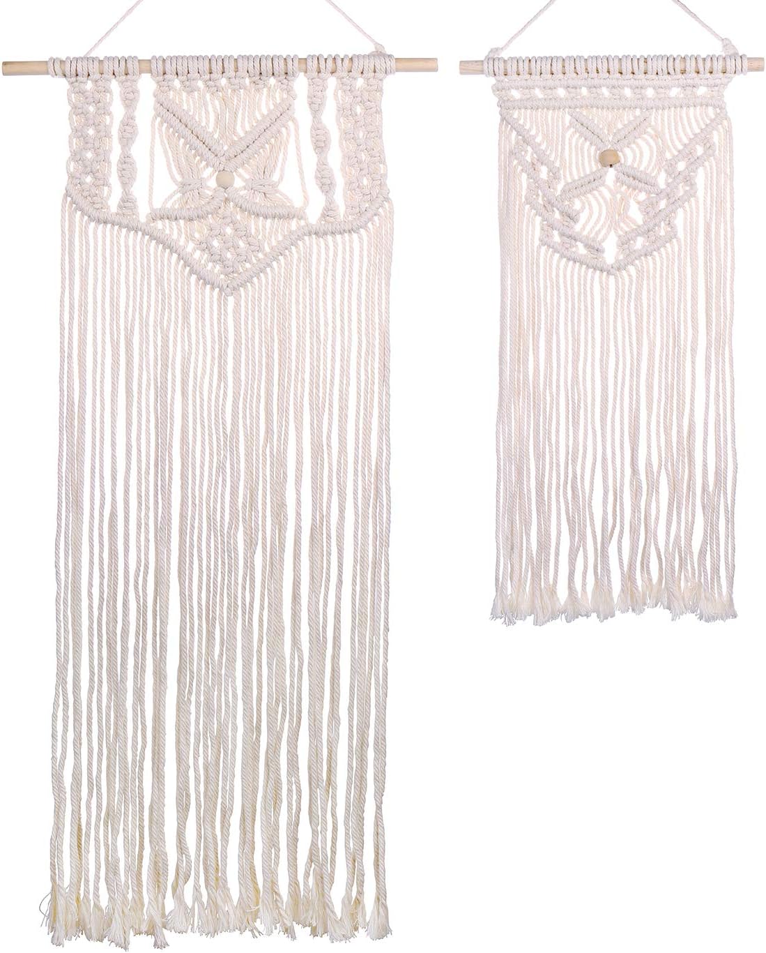Amazon Com Luxbon 2pcs Macrame Wall Hanging Tapestry Boho Chic Art Woven Wall Decor Bohemian Home Decoration For Apartment Living Room Bedroom Gallery 11 8 W X 21 7 L And 15 8 W X 34