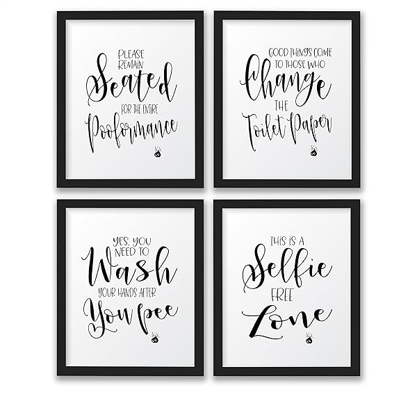 Funny bathroom signs quotes decor by haus and hues set of 4 funny bathroom prints bathroom signs decor funny bathroom decor wall art cute bathroom decor signs funny bathroom wall art decor posters sayings gifts 8x10 unframed 42 out of 5 stars 12. 5 out of 5 stars 1715 1715 reviews 1190 bestseller favorite add to be kind be awesome be you vinyl decal removable wall sticker bathroom bedroom motivation quote. Primitive country bathroom decor add a splash of primitive elegance with this rustic bathroom decoration.