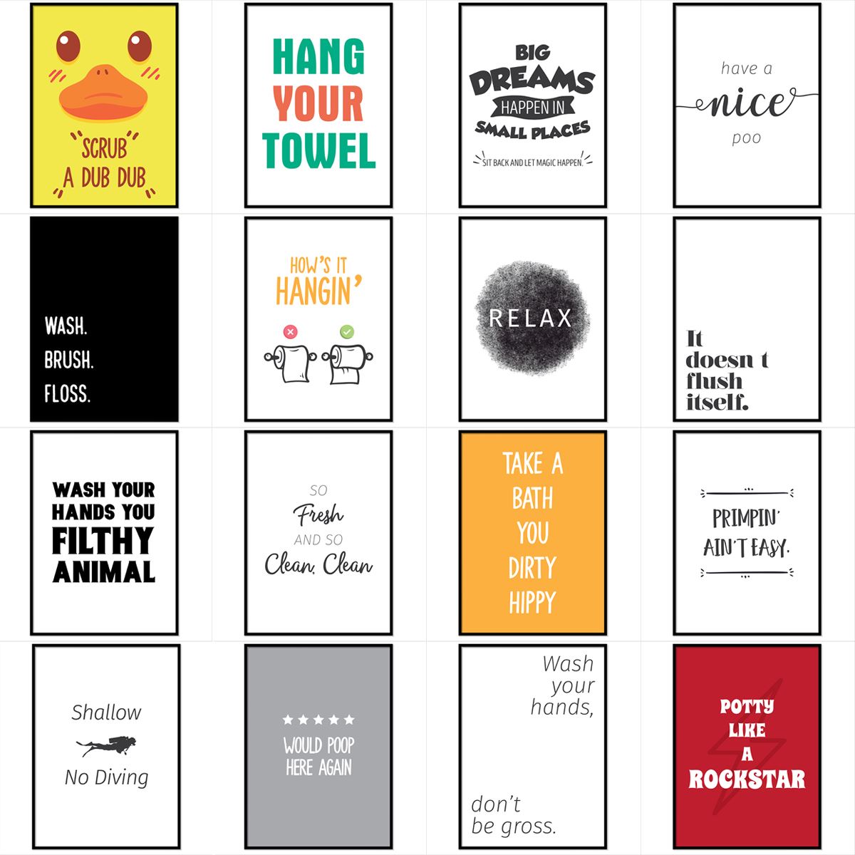 Outshine Bathroom Word Art 4 Pack Unframed Funny Quote Signs For Cute Wall Decor Wantitall