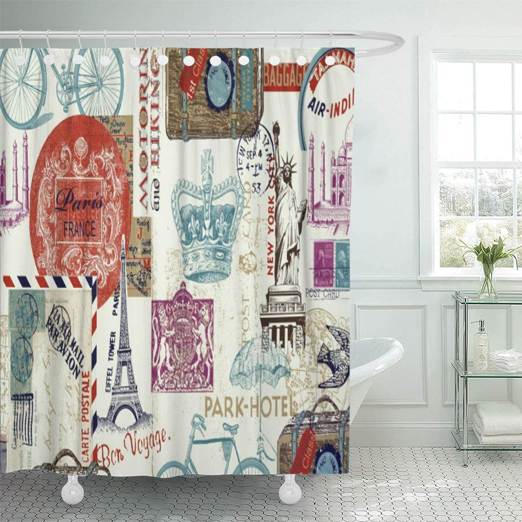 Yusdecor Blue Fine Vintage World Travel Silhouettes White Black Themes Bathroom Decor Bath Shower Curtain 60x72 Inch Walmart Canada