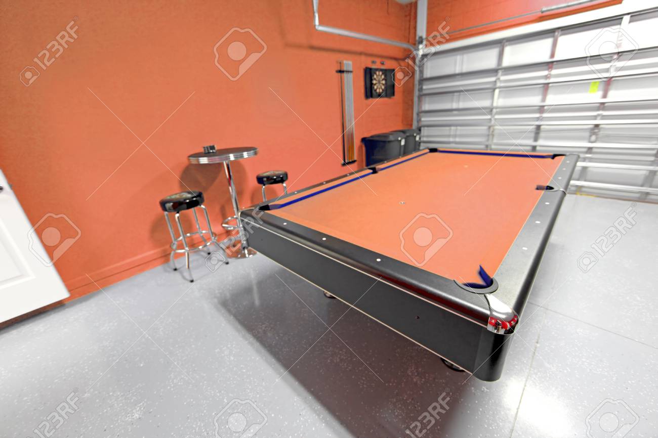 A Games Room With Pool Table In A Garage Stock Photo Picture And Royalty Free Image Image 53001763