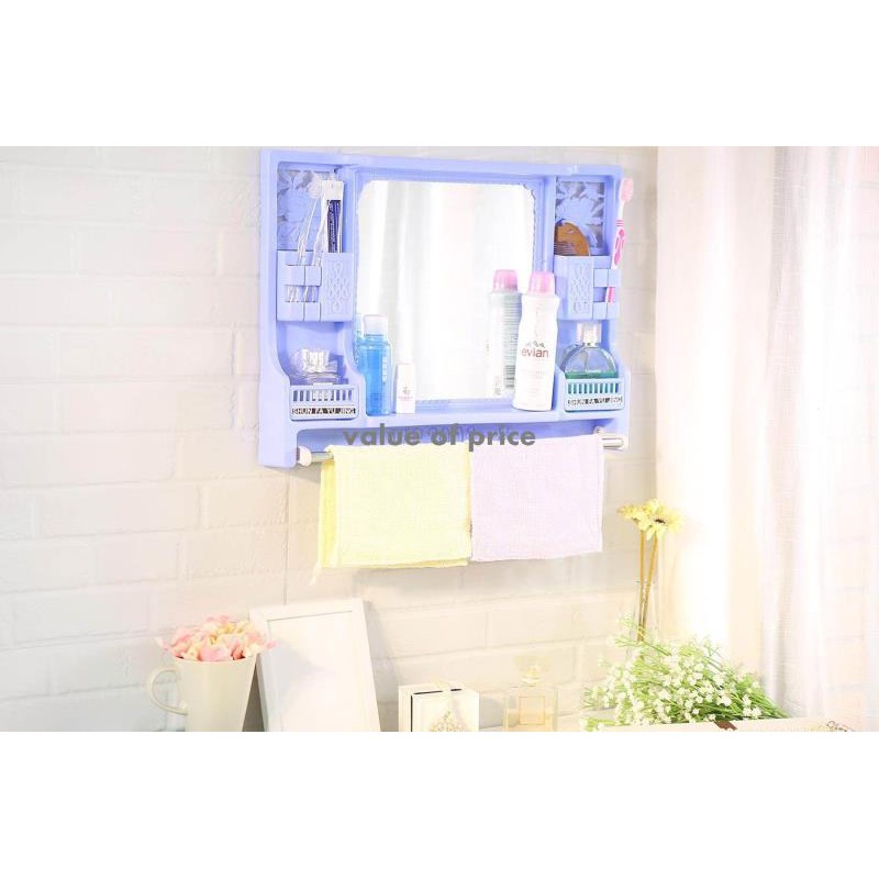 Bathroom Mirror Cabinet Plastic Toilet Bathroom Toilet Makeup Mirror With Shelf Wall Mounted Storage Cabinet W Shopee Malaysia