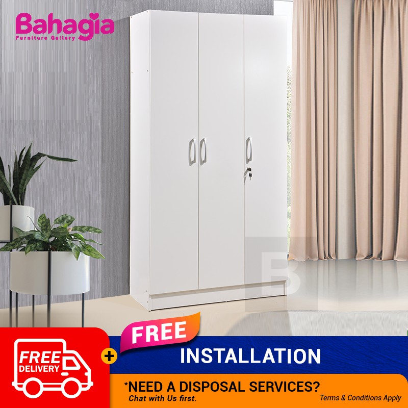 Bahagia 3 Door Wardrobe 3ftx6ft White With Lock Door And 6shelves White Wardrobe Almari Baju Storage Rack Almari Shopee Malaysia
