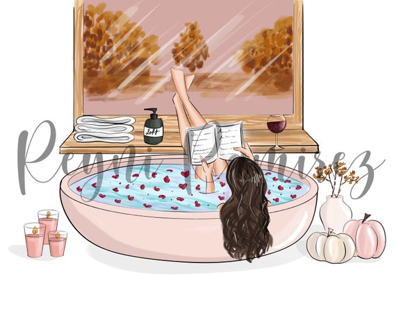 Bath Illustration Bathroom Illustration Bathroom Clipart Etsy
