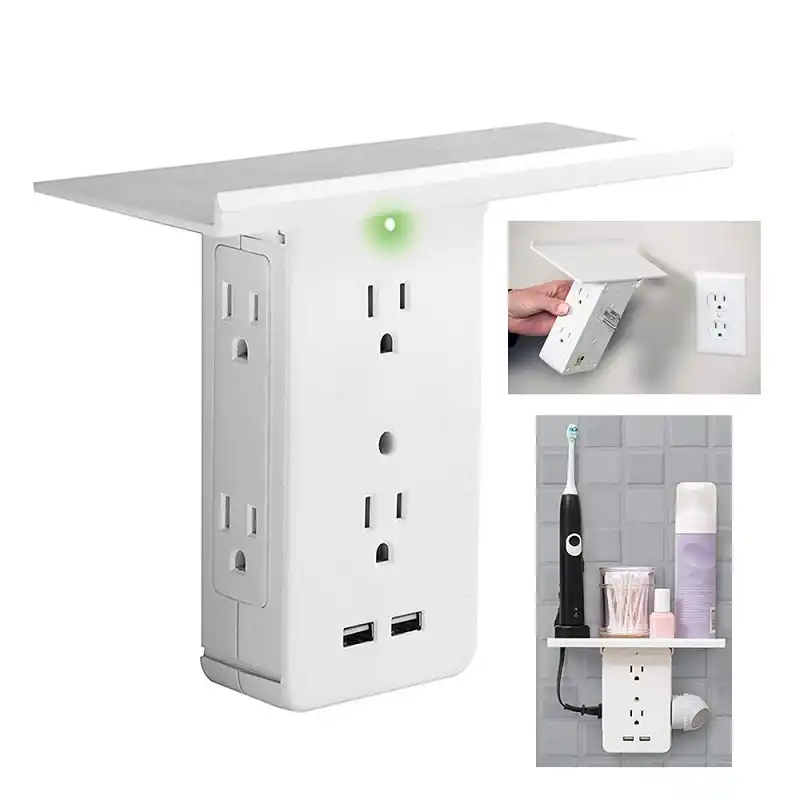 Switch Socket Rack 8 Port Bathroom Wall Outlet Shelf Functional Wall Plug Shelf With 6 Electrical Outlet Extenders 2 Usb Charging Ports Space Saving Solution For Office Living Room Kitchen Bathroom Hardware
