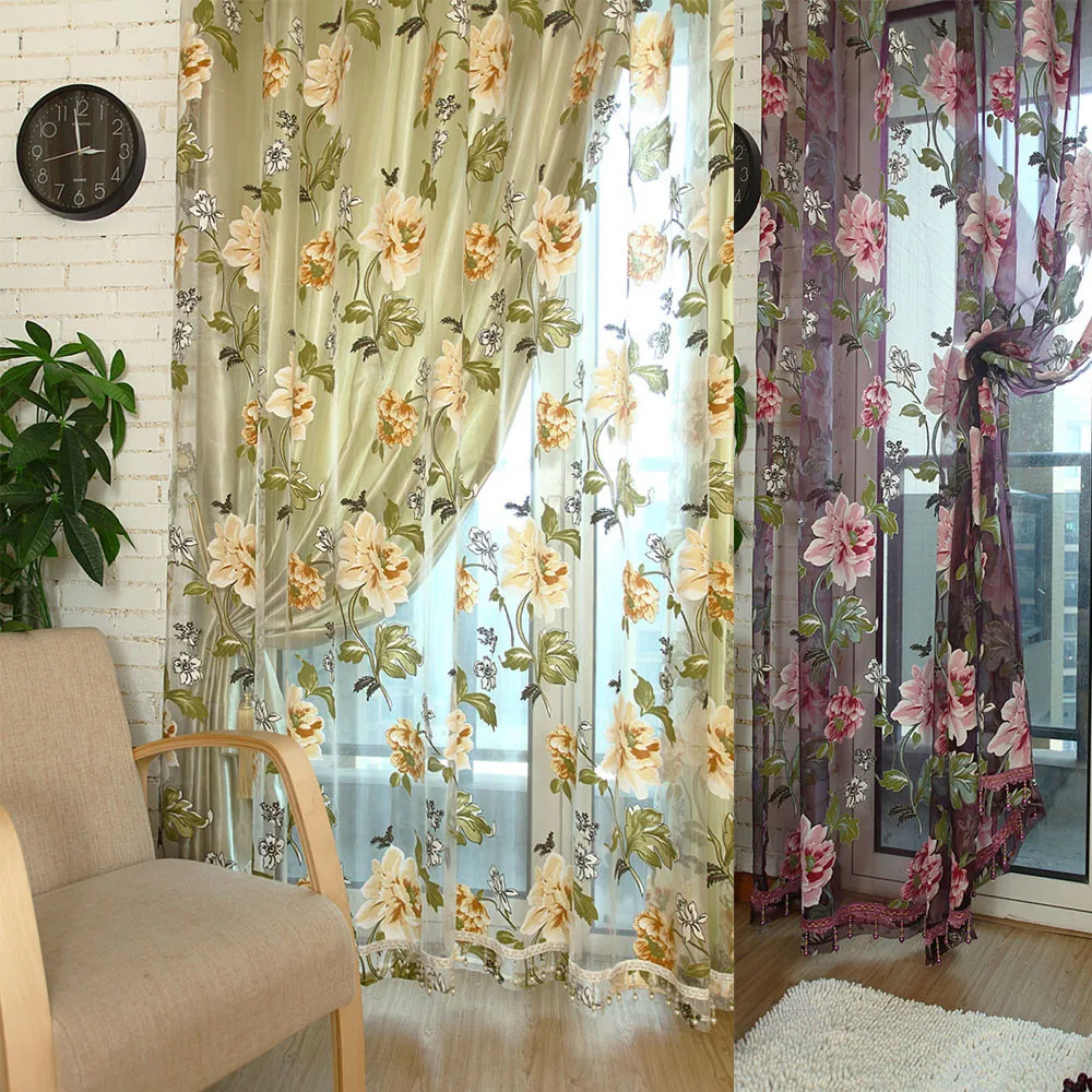 Living Room Curtains Floral Tulle Door Window Curtain Drape Panel Sheer Valances