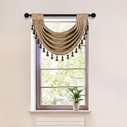 Amazon Com Elkca Coffee Thick Chenille Waterfall Swag Valances For Living Room Rod Pocket Valance Curtains For Kitchen Coffee 30 W X 22 L Home Kitchen