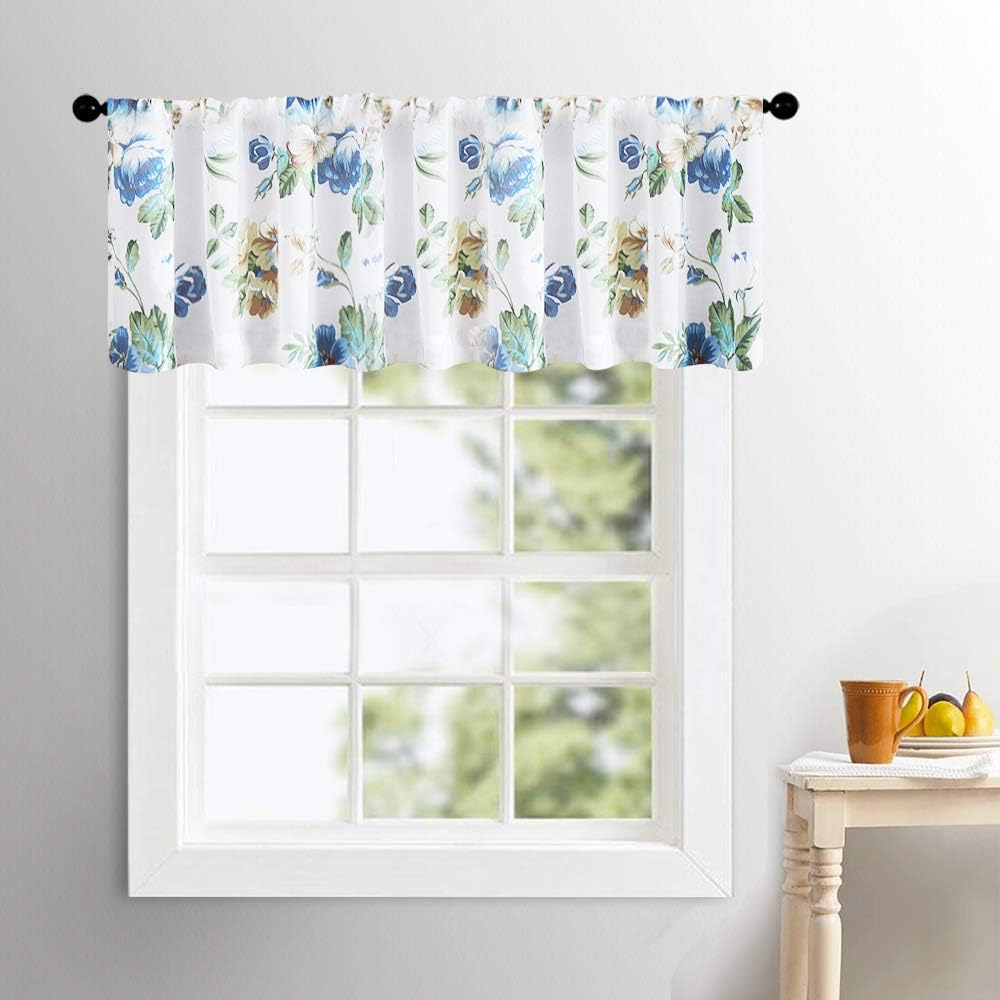 Amazon Com Mrtrees Sheer Valances Living Room Floral Print 16 Inches Long Valance Curtains Cotton Blend Drapes Blue Leaf Flower Printed Voile Bedroom Multi Color Window Treatment Rod Pocket 1 Panel Kitchen