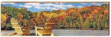 Amazon Com Old Forge New York Fall Lake Adirondack Chairs Home Decor Art Print On Real Wood 9 5 X30 Home Kitchen