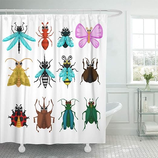 Amazon Com Emvency Shower Curtain 72x72 Inch Home Decor Bathroom Beetle Bugs Cute And Insects White Of Characters Bee And Caterpillar Butterfly Ant Shower Hooks Set Are Included Home Kitchen